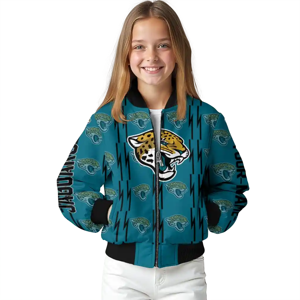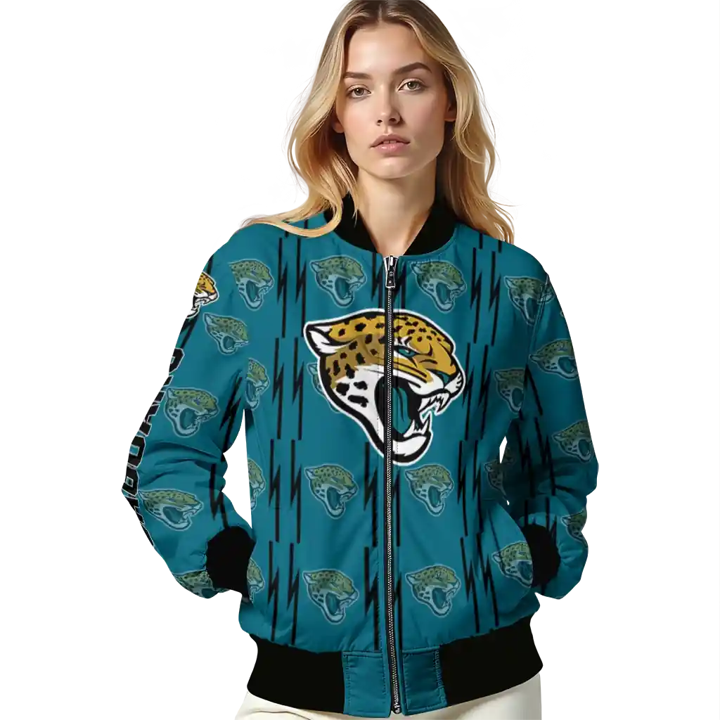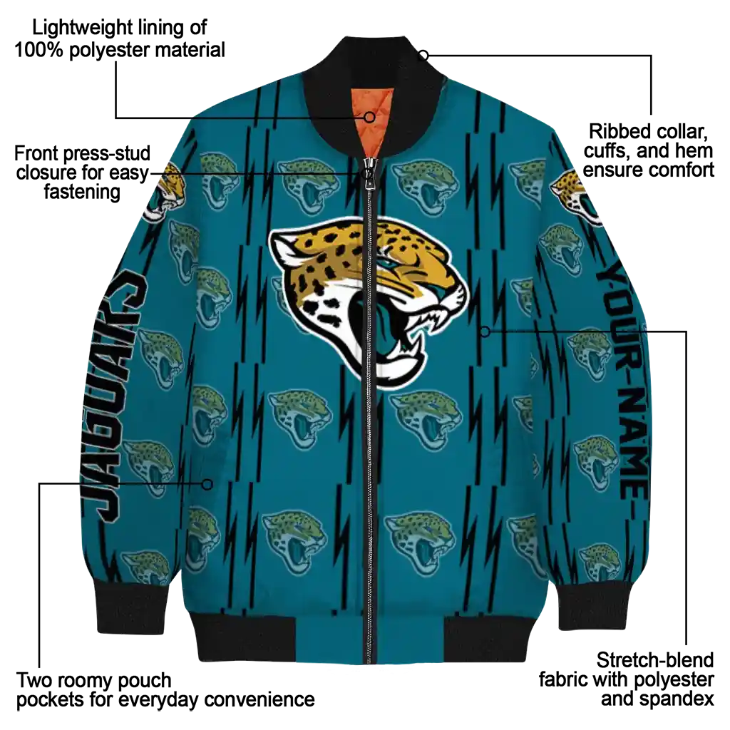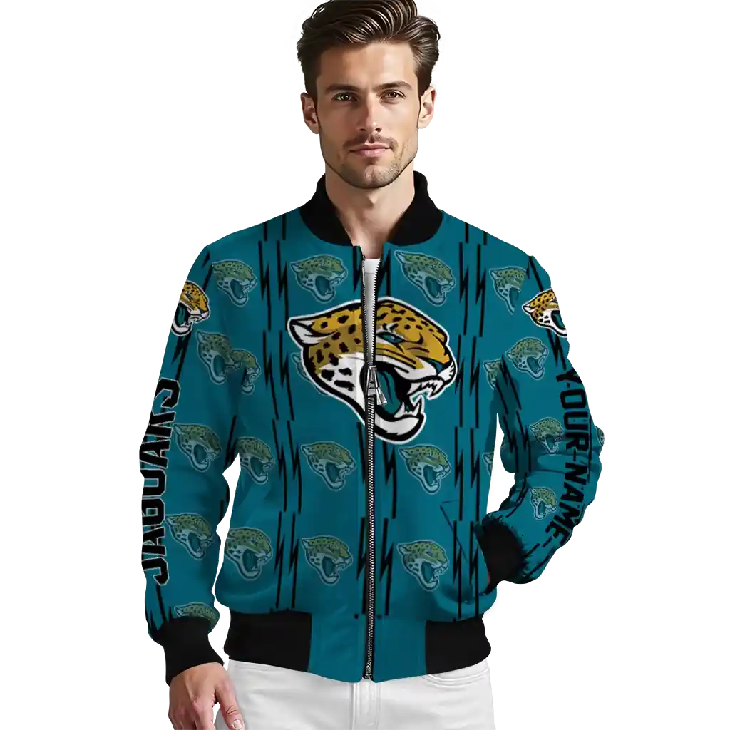 Custom Jacksonville Jaguars Bolt Stripe Teal Bomber Jacket