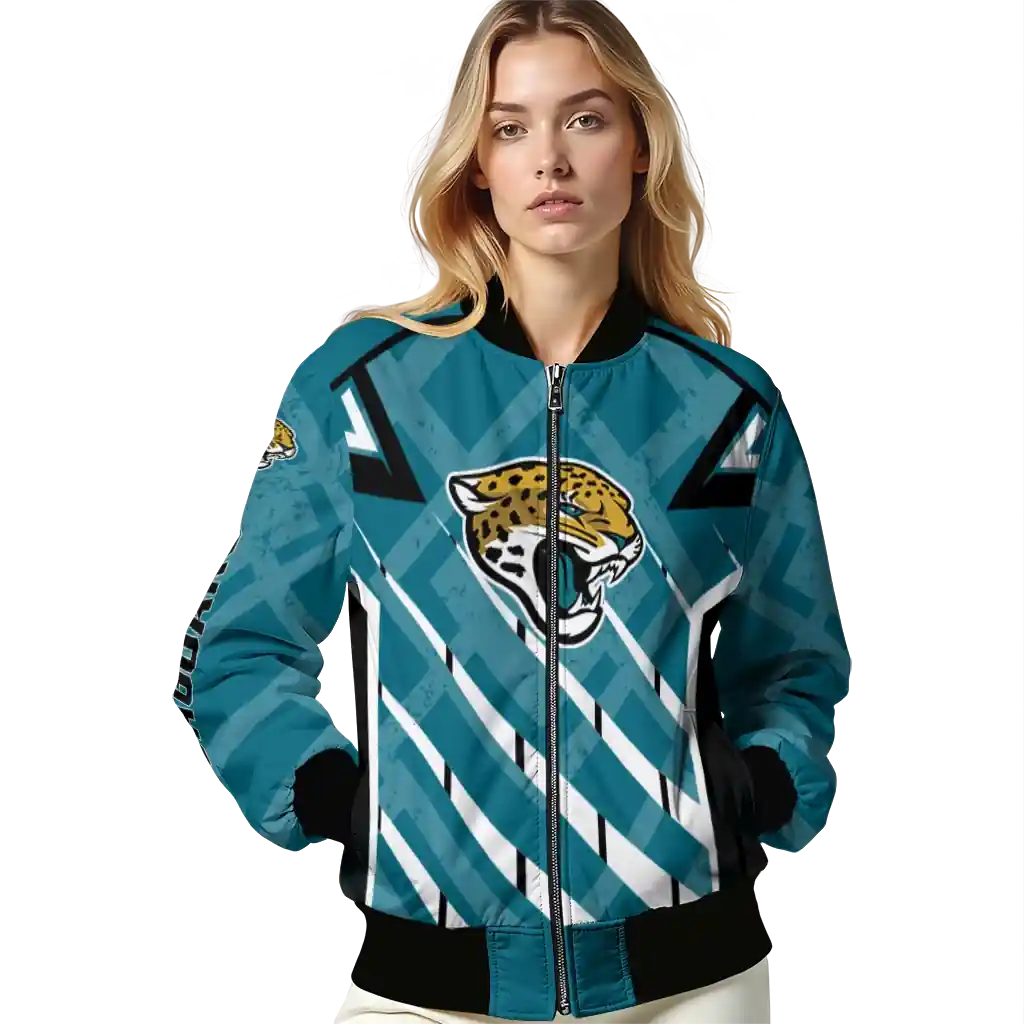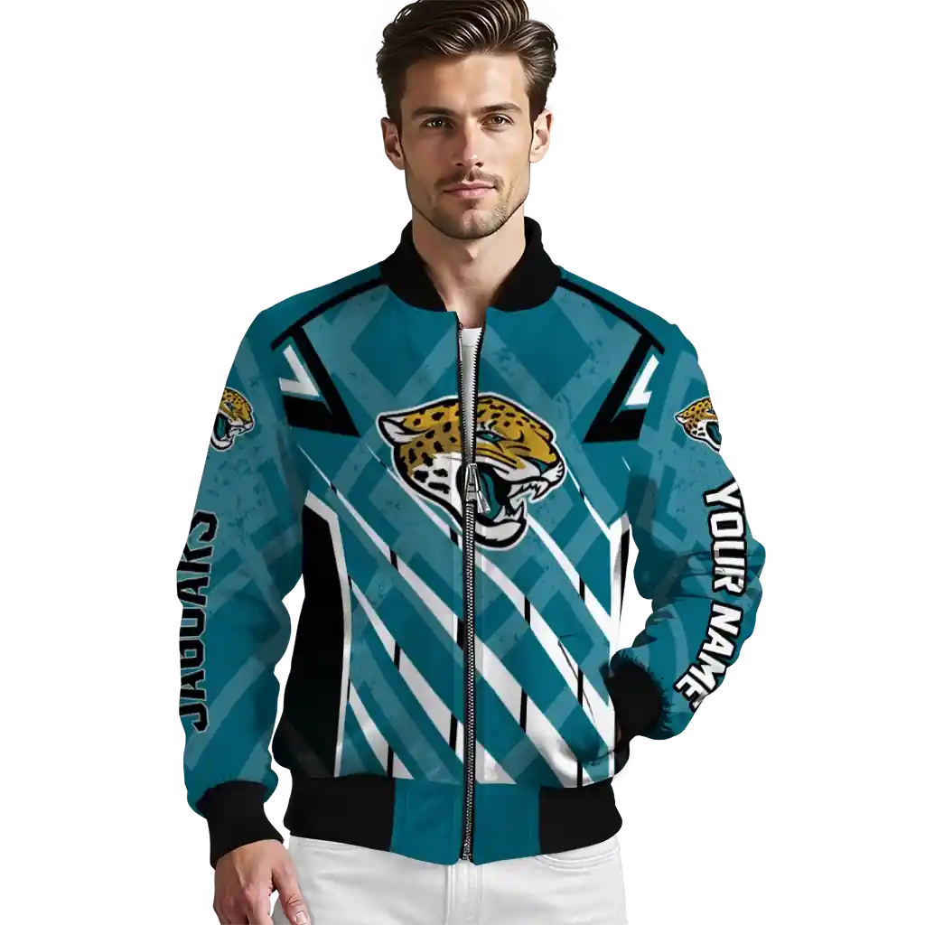 Customized Jacksonville Jaguars Chevron Angles Teal Bomber Jacket